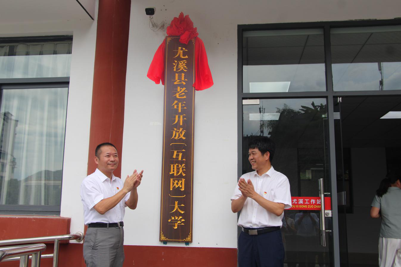 盛夏时节,树木葱茏。7月6日下午,尤溪电大工作站隆重举行尤溪县老年开放(互联网)大学揭牌仪式。学校党委副书记、校长吴国荣教授、尤溪县委书记杨永生、县政府副县长纪优梓、吴初增和县教育系统党委书记、局长詹焕生以及尤溪电大全体员工参加了揭牌仪式。揭牌仪式由县政府副县长吴初增主持。吴国荣、杨永生共同为尤溪县老年开放(互联网)大学揭牌。