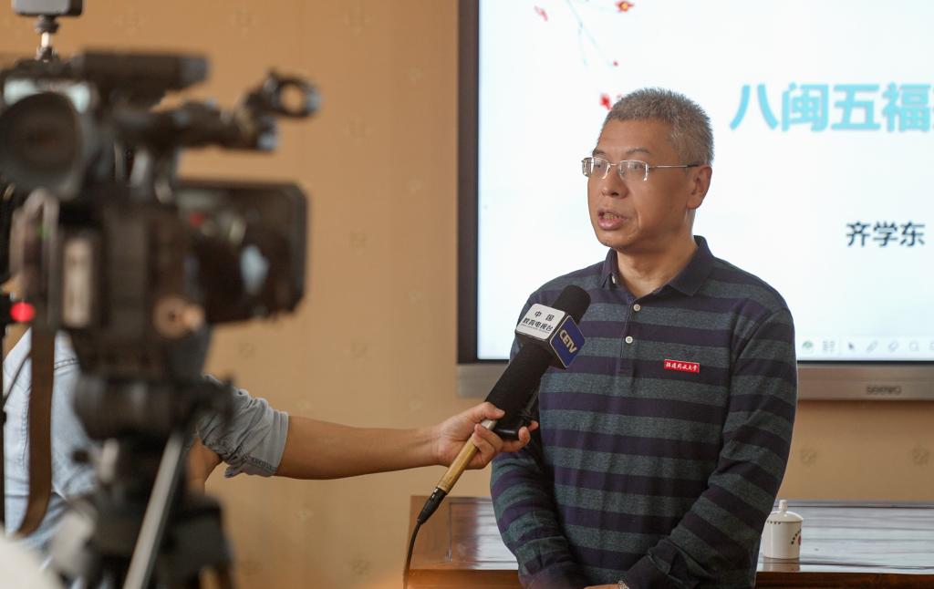 记者团采访福建老年开放(互联网)大学茶文化趣谈班教师齐学东