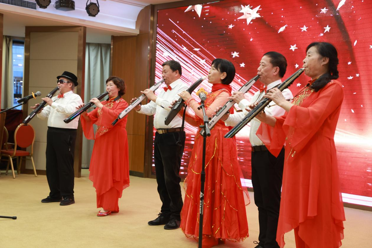 汇演节目精彩纷呈,电吹管合奏《祝福祖国》深情而激昂,表达了对祖国的热爱与祝福;古典舞《相思遥》曼妙柔美,让人仿佛穿越时空,感受到了那份跨越千年的相思之情;二胡独奏《赛马》和二胡表演《我的祖国》更是将观众带入了广袤无垠的草原和壮丽的祖国画卷之中。此外,非洲鼓表演《苹果香》、对唱《长江之歌》、声乐独唱《明天会更好》、合唱《难忘今宵》等节目也各具特色,赢得了现场观众的阵阵掌声。